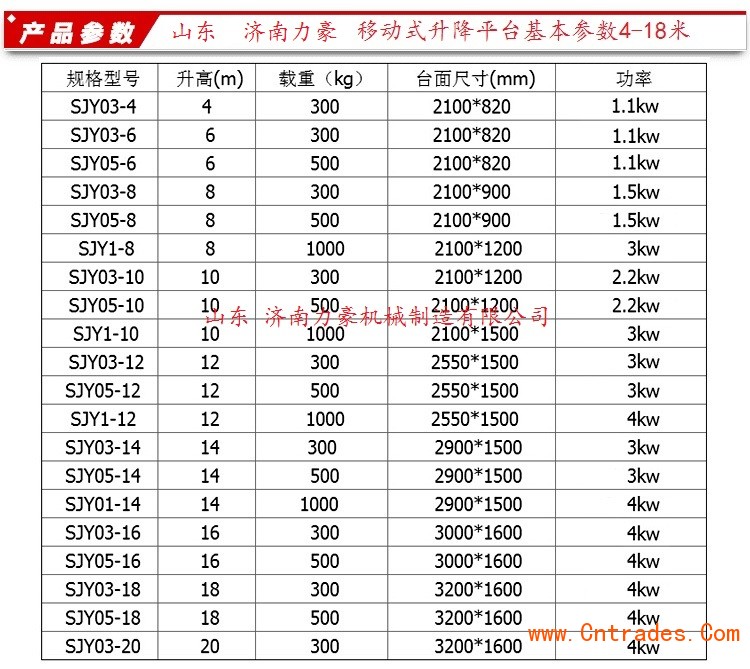 支桿采用高強度矩形管制作,作業(yè)平臺面大,載重量從300kg到2000kg,升高高度由4米、6米、8米、10米到18米不等,適合于很多工況場所,車間維修,高空作業(yè)、監(jiān)控維護等行業(yè),是一種經(jīng)濟適用,操作簡單,維護方便,移動靈活的理想幫手,歡迎來電垂詢!