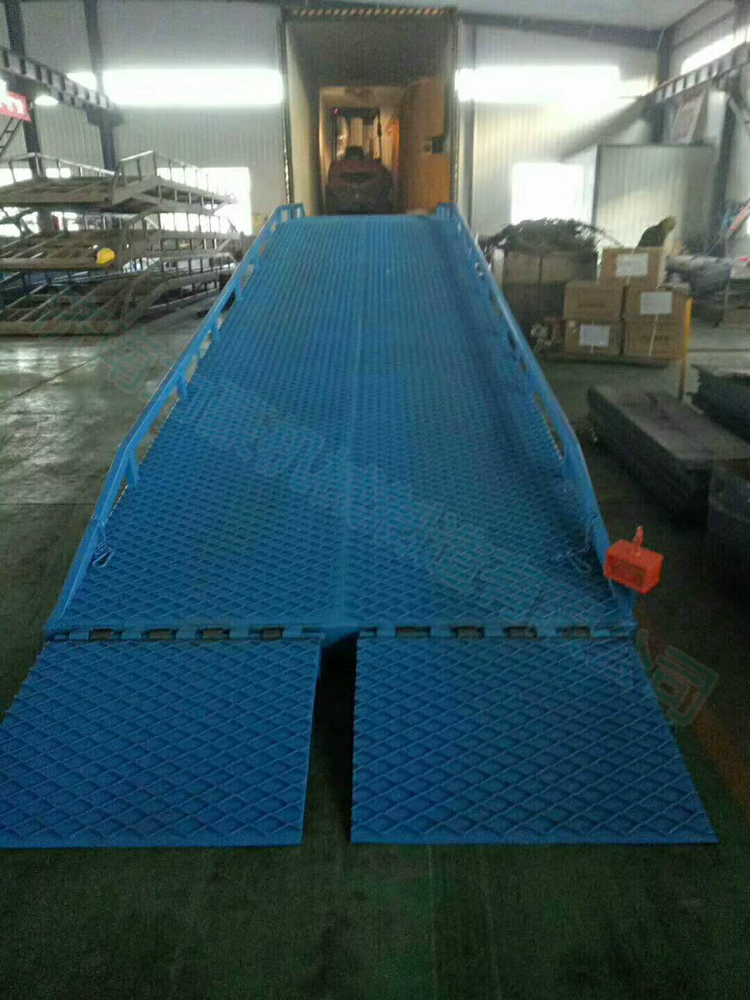 ??液壓登車橋與叉車配合使用的貨物裝卸輔助設(shè)備,根據(jù)汽車車廂的高低調(diào)節(jié)高度,叉車可以直接通過本設(shè)備駛?cè)胲噹麅?nèi)部進(jìn)行貨物的批量裝卸,僅需單人作業(yè),即可實(shí)現(xiàn)貨物的快速裝卸。它使企業(yè)減少大量勞力,提高工作效率,獲取更大經(jīng)濟(jì)效益。