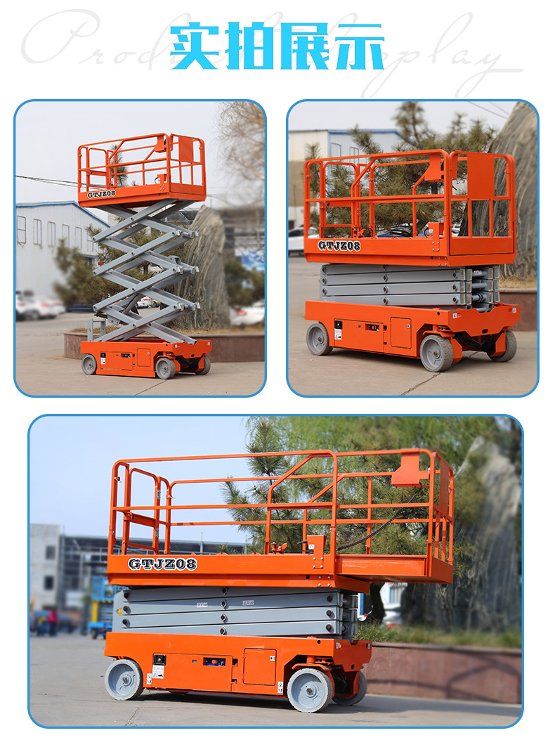 ??自行走液壓升降平臺是一種多功能起重裝卸機械設備。起升高度從1米至20多米不等??筛鶕?jù)個人要求定做特殊規(guī)格的自行式升降平臺。自行式升降平臺采用優(yōu)質(zhì)結(jié)構(gòu)鋼,單面焊接雙面成型工藝,原裝進口液壓泵站或國內(nèi)合資液壓泵站,升降機裝有平衡閥、自動保壓等安全裝置,平臺安全可靠耐用。結(jié)構(gòu)堅固,使升降機的偏轉(zhuǎn)與擺動極小。具有自動行走功能,可選三項電源控制和電瓶控制行走,能夠在不同工作狀態(tài)下,不需外接電源,手柄控制行走,速度可調(diào)式,移動靈活、操作方便、升降自如,只需一人便可完成前進、后退、轉(zhuǎn)向、快、慢速行走和上下等動作,省工、省力??筛鶕?jù)用戶使用要求設技制造。
