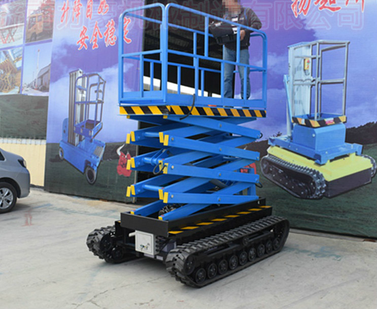 ??履帶輪升降機(jī)具有自動(dòng)行走功能,可選三項(xiàng)電源控制和電瓶控制行走,能夠在不同工作狀態(tài)下,不需外接電源,手柄控制行走,速度可調(diào)式,移動(dòng)靈活、操作方便、升降自如,只需一人便可完成前進(jìn)、后退、轉(zhuǎn)向、快、慢速行走和上下等動(dòng)作,省工、省力??筛鶕?jù)用戶使用要求設(shè)技制造。