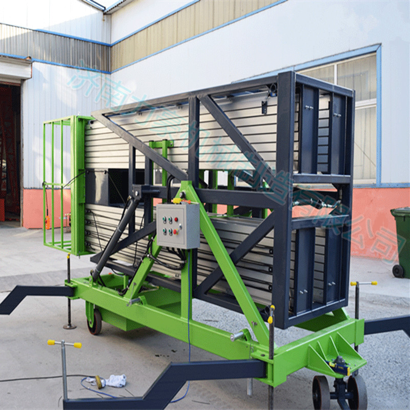 鋁合金升降平臺簡介:整體采用高強(qiáng)度鋁型材精制而成由于型材強(qiáng)度高,具有造型美觀、體積小、重量輕、結(jié)構(gòu)緊湊、移動方便、升降平臺平穩(wěn)、操作方便、安全可靠等優(yōu)點,令高空作業(yè)更方便快捷,能夠快速、慢速行走,可調(diào)速,是現(xiàn)代企業(yè)高效安全生產(chǎn)之理想高空作業(yè)設(shè)備。主要產(chǎn)品分為單立柱鋁合金升降平臺,雙立柱鋁合金升降平臺,三立柱鋁合金升降平臺、四立柱鋁合金升降平臺,放倒式鋁合金升降平臺,多柱鋁合金升降舞臺。特點:采用高強(qiáng)度優(yōu)質(zhì)鋁合金材料,具有造型美觀、體積小、重量輕、升降平穩(wěn)、安全可靠等優(yōu)點。它輕盈的外觀,能在極小的空間內(nèi)發(fā)揮最高的舉升能力。立柱升降系統(tǒng),具有載量大,穩(wěn)固性強(qiáng),平臺面積大,推行方便等特點。