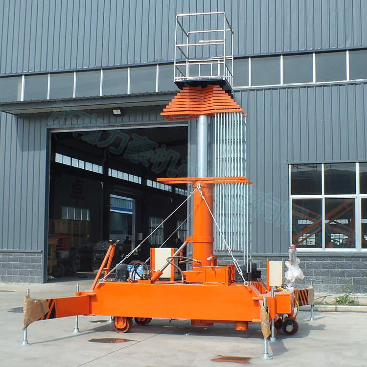 套缸式升降作業(yè)平臺:也叫做套缸式升降平臺,最大高度可升降30米,是一種多用途的高空作業(yè)機械,其功能將載有作業(yè)人員和使用器材的平臺送到指定高度進行空中作業(yè)的特種工程設備。這種設備被廣泛用于工礦車間、高大廳堂、倉庫、車站、廣場等高空作業(yè)。整機由平臺、伸縮油缸、單梯式或雙梯式防轉機構、底盤油箱、支腿、行走輪等組成。