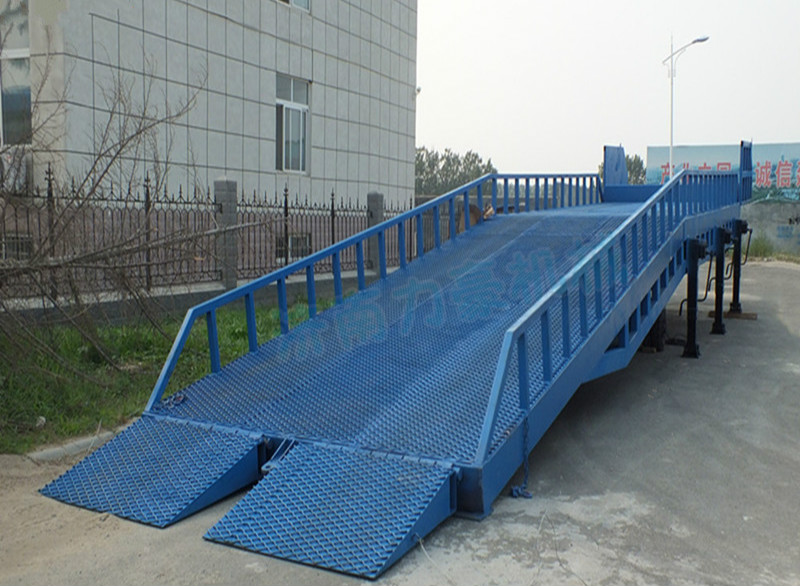 ??移動(dòng)式登車橋產(chǎn)品,它主要應(yīng)用在物流貨運(yùn)、各類車站、碼頭、工廠倉庫等貨運(yùn)量大,但又不方便做貨臺的場所,能夠在地面和運(yùn)輸車輛之間搭起一座橋,達(dá)到裝卸貨目的,該設(shè)備一端與地面接觸,另一端搭接在車廂后緣上,并能根據(jù)不同車型及裝車過程中車廂的變化,自動(dòng)調(diào)整高度,從而大大提高工 作效率。主體部分采用矩形管焊接而成,強(qiáng)度高,承載能力大;液壓系統(tǒng)采用進(jìn)口手壓泵,安全耐用;橋面采用高強(qiáng)度鋼板網(wǎng),增加了磨擦系數(shù),便于叉車的行駛, 減輕了橋體的自身重量,使移動(dòng)更加靈活。